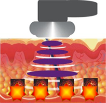 過剰に存在する皮下脂肪に働きかけて代謝促進する。超音波の出力が従来とは格段に違うのでセルライトの溶解や燃焼速度はもちろん過剰な皮下脂肪や内臓脂肪の燃焼促進まで可能。