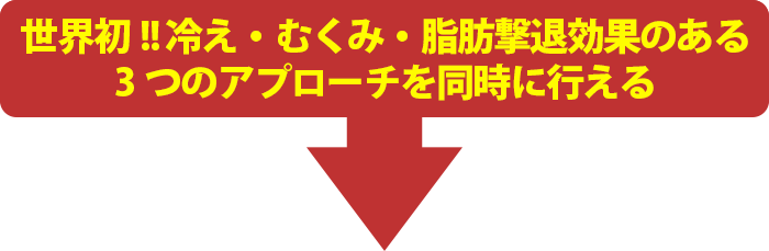 局所的に体温を上昇させる温熱効果により、体内の滞りを血流改善することで、冷えを改善し、基礎代謝を上げ続けることで痩せやすく太りにくい体質に。